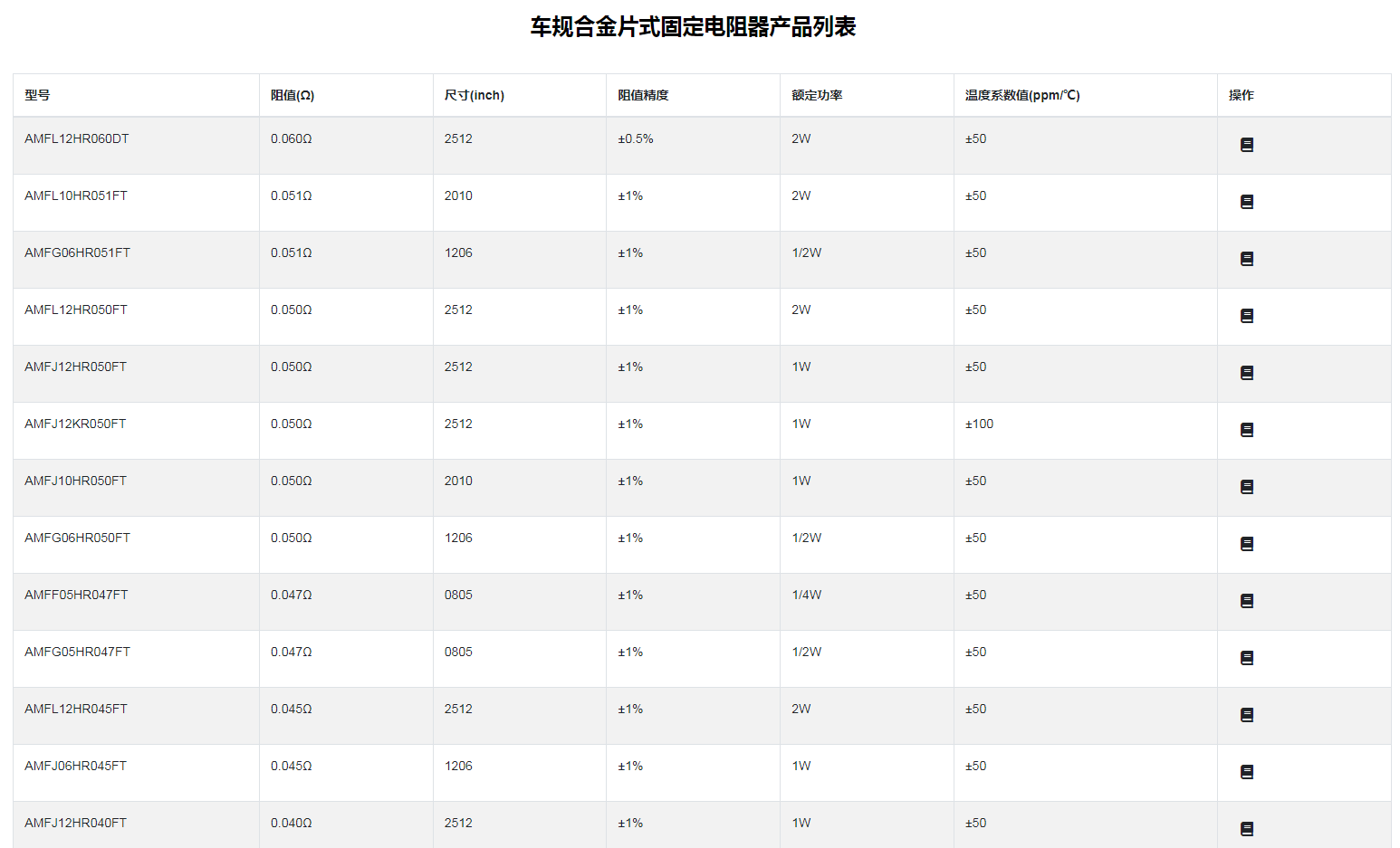 车规合金片式固定电阻器