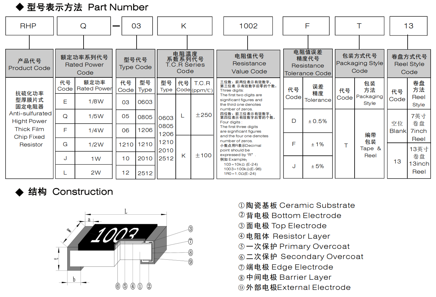 抗硫化功率型厚膜片式固定电阻器