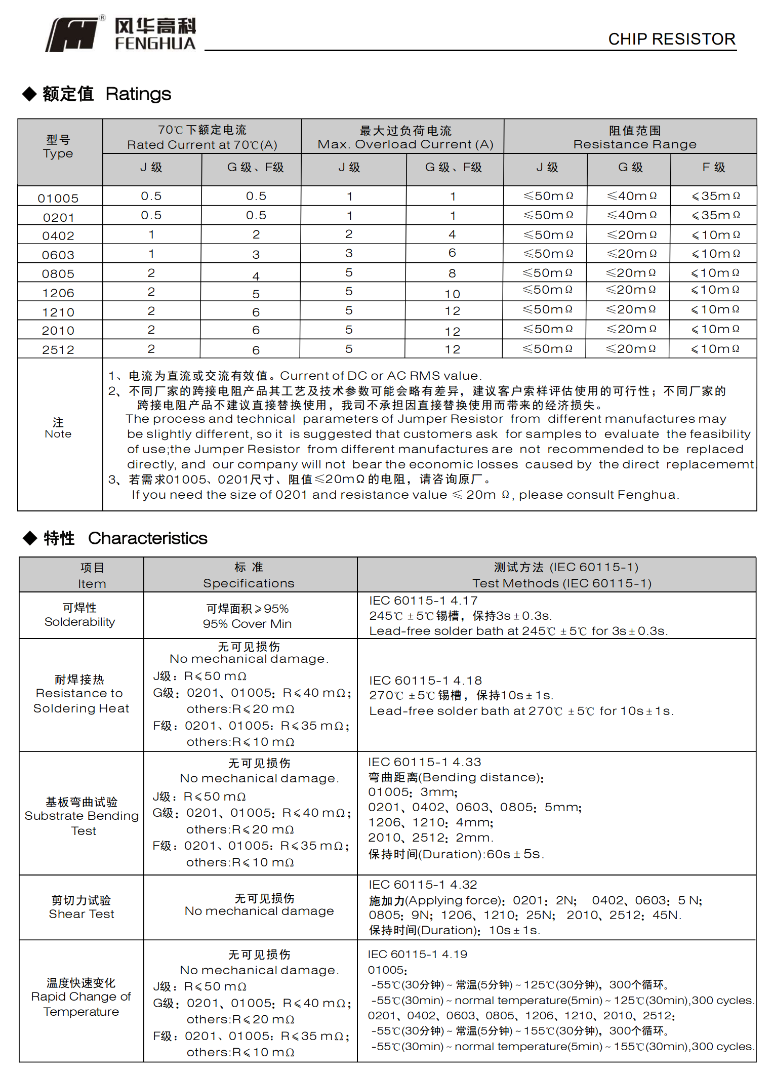 厚膜片式跨接固定电阻器