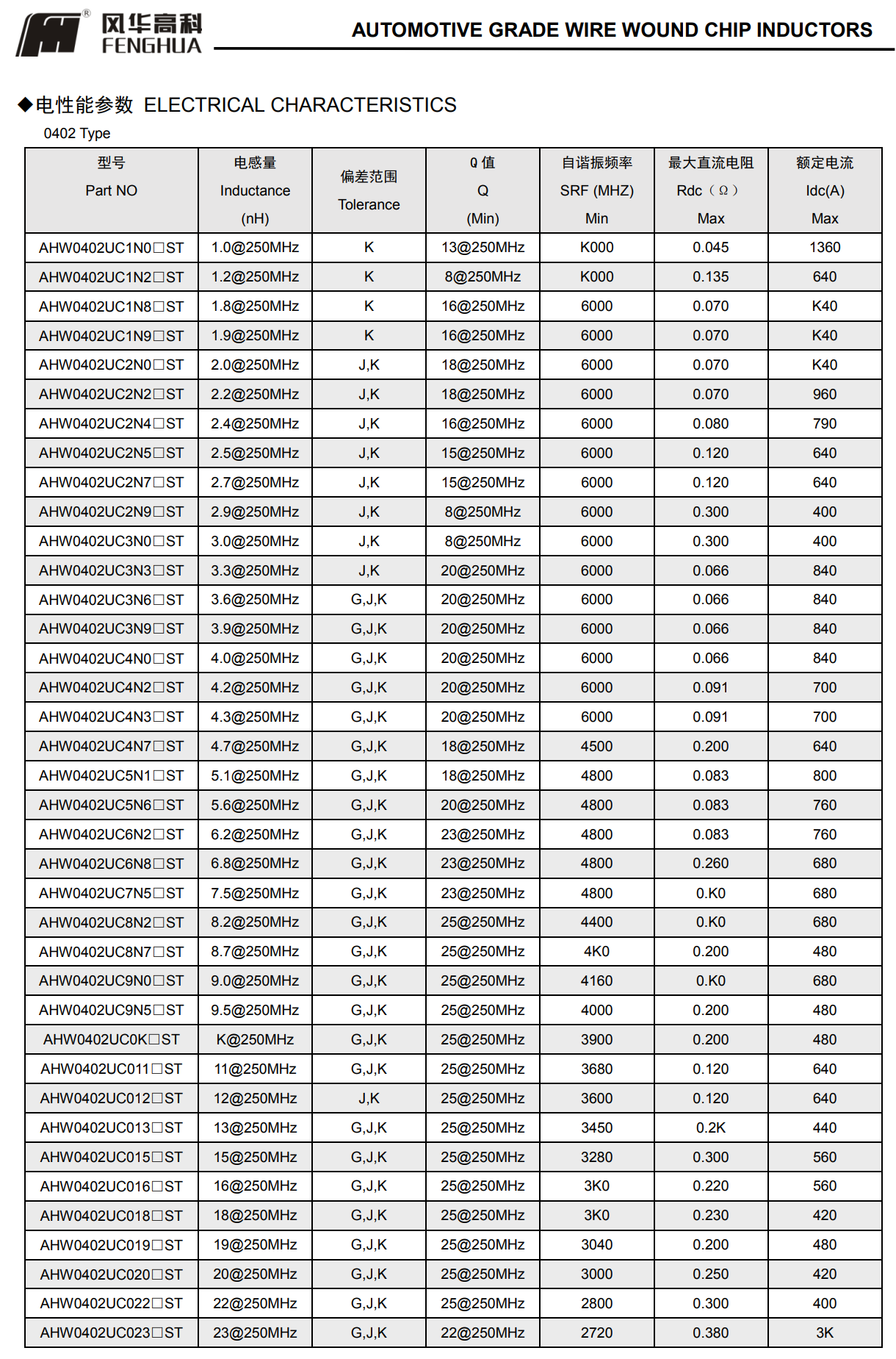 体积小,适合高密度表面贴装;符合AEC-Q200。